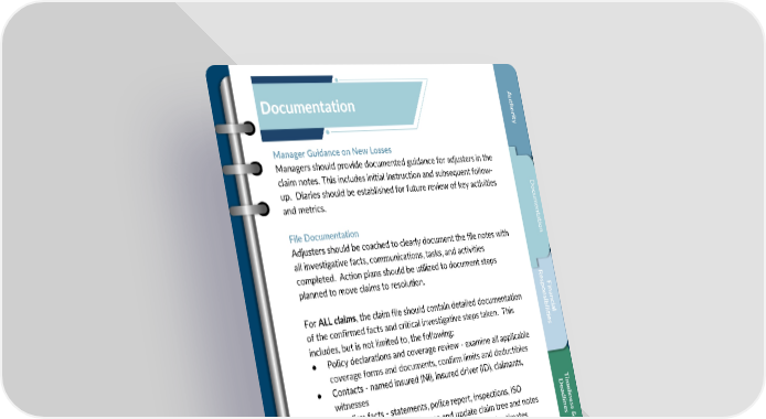 A ut Documentation hor i t y Manager Guidance on New Losses Managers should provide documented guidance for adjusters in the claim notes. This includes initial instruction and subsequent follow- up. Diaries should be established for future review of key activities D D oc ocum and metrics. um e ent n t a at File Documentation t i i on Adjusters should be coached to clearly document the file notes with on all investigative facts, communications, tasks, and activities completed. Action plans should be utilized to document steps planned to move claims to resolution. R es F p i ons n For ALL claims, the claim file should contain detailed documentation i an b c i i of the confirmed facts and critical investigative steps taken. This l al i t i includes, but is not limited to, the following: es ● Policy declarations and coverage review - examine all applicable coverage forms and documents, confirm limits and deductibles ● Contacts - named insured (NI), insured driver (ID), claimants, witnesses T D i ● Confirm facts - statements, police report, inspections, ISO ea m d el i ● Determine liability/negligence and update claim tree and notes l nes i ● Verify property damage and request photos and estimates nes s & ● Document reserve rationale when opening and adjusting reserves ● Initial Status Report should document investigation, action plan, and anticipated outcome C ● Document mailing of all applicable statutory, mitigation, and us t om C l claim-specific letters i er ent D & et 25 a i l Confidential, Proprietary and Trade Secret Document of NARS and protected by the Florida Uniform Trade s Secrets Act, chapter 688, Florida Statutes. No use allowed unless specifically authorized.