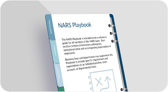 s e l ip c in r NARS Playbook P S R NA The NARS Playbook is intended to be a reference e guide for all members of the NARS team. Each c section contains information outlining key n a i pl operational areas and accompanying expectations of m employees. Co Business lines and departments may supplement this t Playbook to include specific requirements and ens expectations on an individual position, team, emt g a en n a em account, or departmental basis. r e Mi c u n eq a m & R or f er P ees ivi t ti l ai rb ti is inons mp des AR g k n or gi a W n a our M Y 2 Confidential, Proprietary and Trade Secret Document of NARS and protected by the Florida Uniform Trade Secrets Act, chapter 688, Florida Statutes. No use allowed unless specifically authorized.