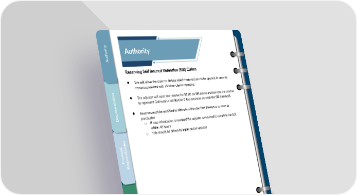 y t i Authority hor ut A Reserving Self Insured Retention (SIR) Claims • We will allow the claim to dictate which feature(s) are to be opened, in order to remain consistent with all other claims reporting. on i t • The adjuster will open the reserve for $1.00 on SIR claims and increase the reserve a to represent Gateway’s contribution if the exposure exceeds the SIR threshold. ent um • Reserves must be modified to ultimate within the first 90 days or as soon as oc D practicable o If new information is received the adjuster is required to complete the LLR within 48 hours es o This should be driven by injury status updates i t i al l i i c b ani n ons i p F es R & s nes i nesl i d elea m D i T s l i a &et D enter i l C om t 26 us C Confidential, Proprietary and Trade Secret Document of NARS and protected by the Florida Uniform Trade Secrets Act, chapter 688, Florida Statutes. No use allowed unless specifically authorized.