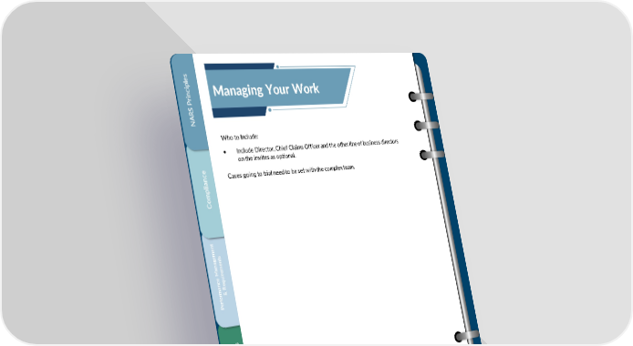 se iplincManaging Your Work rS P ARN Who to Include: • Include Director, Chief Claims Officer and the other line of business directors on the invites as optional. e Cases going to trial need to be set with the complex team. iancpl mo C tn megents aanme Me uire c Req manfor& rPe iveies trait stinionsibil mAdResp ingork gna W MaYuro 18 Confidential, Proprietary and Trade Secret Document of NARS and protected by the Florida Uniform Trade Secrets Act, chapter 688, Florida Statutes. No use allowed unless specifically authorized.