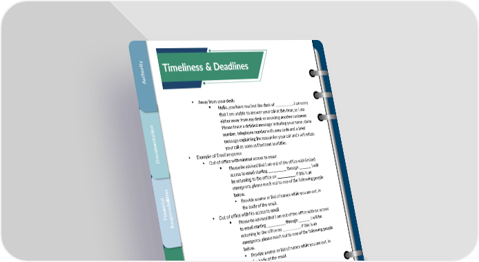 yrit Timeliness & Deadlines ho Aut • Away from your desk: • Hello, you have reached the desk of ___________. I am sorry that I am unable to answer your call at this time, as I am ntio either away from my desk or assisting another customer. a Please leave a detailed message including your name, claim nte number, telephone number with area code and a brief um message explaining the reason for your call and I will return co your call as soon as I become available. D • Example of Email response • Out of office with minimal access to email: • Please be advised that I am out of the office with limited access to email starting ___________ through _______. I will sie be returning to the office on ___________. If this is an ialit emergency, please reach out to one of the following people nsibil below. inancFo • Provide a name or list of names while you are out, in spe the body of the email. R • Out of office with No access to email • Please be advised that I am out of the office with no access to email starting ___________ through _______. I will be returning to the office on ___________. If this is an emergency, please reach out to one of the following people & below. ss s • Provide a name or list of names while you are out, in ineldline the body of the email. eimDea T stail & De ntliemer C o 26 ustC Confidential, Proprietary and Trade Secret Document of NARS and protected by the Florida Uniform Trade Secrets Act, chapter 688, Florida Statutes. No use allowed unless specifically authorized.
