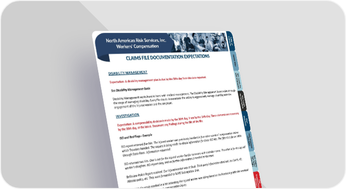 C T onable o North American Risk Services, Inc. t en tsf Workers’ Compensation CLAIMS FILE DOCUMENTATION EXPECTATIONS NARS W a DISABILITY MANAGEMENT y U W Expectation: A disability management plan is due by the 30th day from the date reported. nit MC C anagr See Disability Management Guide edo f eror Disability Management works hand in hand with medical management. The Disability Management Guide walks through s f the steps of managing disability. Every file should demonstrate the ability to aggressively manage disability with the orW engagement of the injured worker and the employer. SC C pecialistsr INVESTIGATION edo Expectation: A compensability decision is made by the 30th day, if not by the 14th day. These elements are necessary by the 30th day, at the latest. Document any findings during the life of the file. P r acticB ISO and Red Flags - Example esest ISO report returned five hits. The injured worker was previously involved in four other workers’ compensation claims U which Travelers handled. The request is being made to obtain information for these ISO hits. The fifth hit is for an MVA Checklistnit M through State Farm. Information requested. anag ISO returned two hits. One is not for the injured worker but for someone with a similar name. The other is for the injured er worker’s daughter. ISO report okay, and no further information is needed at this time. ChecklistSW Belleview Police Report received. Our injured worker was at fault. Third-party information obtained: Joe Smith, 43, pecialist C Claims Allstate policy, etc. They were forwarded to NARS Subrogation Unit. Social Media scrub resulted in a hit indicating the injured worker was skiing based on his Facebook profile the weekend before reporting his employer’s compensation injury. Expecta 14 DF a tionsile VOCATIONAL REHABILITATION y s Expectation: Document the file as noted below. Copy and paste the template into the file and fill it in. Template Expecta F tionsile • Not anticipated at this time. R Template e f • Vendor for VR: erD • Does the client approve the service? encisability • Rationale: e G uide CaN t o egt orieses and 22 23