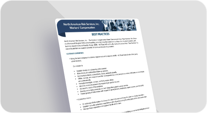 North American Risk Services, Inc. Workers’ Compensation BEST PRACTICES North American Risk Services, Inc. – The Workers’ Compensation Claims Team adopts these “Best Practices” for Claims as a framework for good faith claims handling, understanding that each claim is unique, the industry is dynamic, and business requirements continually change. NARS – WC Team will continually review and assess these “Best Practices” to assure its position as a superior provider of claims services to its customers. CUSTOMER EXPERIENCE: • Being the best company at customer experience is what separates NARS – WC Team from all other third-party administrators. Our mission is: • Establish timely and substantive initial contact. • Make timely and substantive follow-up contacts. • Communicate timely, substantively, clearly, and professionally. • Utilize, manage, and respond to written correspondence, e-mail, telephone contact, SMS texts and chat timely and professionally. • Promptly investigate, analyze, and fairly resolve claims. • Meet the needs of customers by responding to special requests. • Address the needs of the employer. • Develop and employ processes and technology that support superior service. • Protect privacy of information with respect to agents/brokers, employers, injured workers, and the NARS. • Substantive means: • An exchange of information that keeps the client informed and brings the claim to a timely disposition. • Establish mutually understood expectations with all parties during the initial phase of the claim evaluation. • Manage those expectations throughout the life of the claim. COVERAGE: • Identification of all potentially applicable coverages is a critical step in fulfilling our contractual obligations to our clients. • The subsequent analysis and application of coverage to the facts of the loss is the foundation upon which a claim is appropriately resolved, and sound evaluations and decisions are made. • The coverage evaluation process includes identification and analysis of: • applicable coverage forms • the relevant insuring agreement and policy provisions • all endorsements which may apply and serve to enhance or restrict coverage • applicable coverage limits • deductibles • co-insurance • available excess coverage • documentation to support analysis NARS’ Best Practices were created by and for the internal use of NARS and are confidential, proprietary and trade secret documents protected by the Uniform Trade Secrets Act and applicable state/federal law. They may not be copied, distributed, or reproduced, in whole or in part, without NARS’ express prior written 4 authorization. Unauthorized use or distribution may be subject to civil and/or criminal penalties. 5