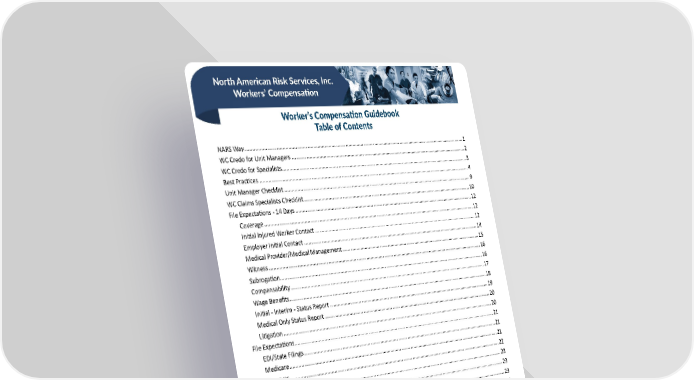 North American Risk Services, Inc. Workers’ Compensation Worker’s Compensation Guidebook Table of Contents NARS Way ............................................................................................................................................................... 1 WC Credo for Unit Managers .................................................................................................................................2 WC Credo for Specialists.........................................................................................................................................3 Best Practices .........................................................................................................................................................4 Unit Manager Checklist ..........................................................................................................................................9 WC Claims Specialists Checklist ............................................................................................................................10 File Expectations - 14 Days ...................................................................................................................................12 Coverage .........................................................................................................................................................12 Initial Injured Worker Contact ........................................................................................................................12 Employer Initial Contact .................................................................................................................................14 Medical Provider/Medical Management ........................................................................................................15 Witness ...........................................................................................................................................................16 Subrogation.....................................................................................................................................................16 Compensability ...............................................................................................................................................17 Wage Benefits .................................................................................................................................................18 Initial - Interim - Status Report .......................................................................................................................19 Medical Only Status Report ............................................................................................................................20 Litigation .........................................................................................................................................................20 File Expectations ...................................................................................................................................................21 EDI/State Filings ..............................................................................................................................................21 Medicare .........................................................................................................................................................21 Reserves ..........................................................................................................................................................22 Disability Management ...................................................................................................................................23 Investigation ...................................................................................................................................................23 Vocational Rehabilitation ................................................................................................................................23 Ongoing Subsequent Communication ............................................................................................................24 Second Injury Fund .........................................................................................................................................24 Nurse Case Management ................................................................................................................................24 Unit Manager Review - Category - Managerial Note ......................................................................................25 Subsequent Unit Manager Quality Claim Management Review (QCM) .........................................................25 Special Investigation Unit................................................................................................................................26 Vendor ............................................................................................................................................................26 Closing Note ....................................................................................................................................................26 Authority/Authority Requested ......................................................................................................................26 Disability Reference Guide ...................................................................................................................................27 Notes and Categories ...........................................................................................................................................29 1
