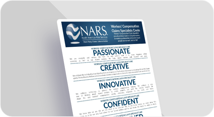 Workers’ Compensation Claims Specialists Credo Workers’ Compensation Claims Specialists are extraordinary leaders of injured workers, formulating optimal plans of recovery to get people back to work, back to life! WORKERS’ COMPENSATION CLAIMS SPECIALISTS ARE PASSIONATE We are energetic and curious. We love life and actively craft it to create happiness within ourselves as well as our injured workers. We help injured workers with recovery and goals. WORKERS’ COMPENSATION CLAIMS SPECIALISTS ARE CREATIVE We celebrate the individuality of our injured workers and of ourselves. That is what makes us special and unique! We are the change agents. The trailblazers. We have a desire to advance workers’ compensation culture and create a new reality for the world to follow. WORKERS’ COMPENSATION CLAIMS SPECIALISTS ARE INNOVATIVE We embrace technology to advance the workers’ compensation industry. We embrace a new way of thinking about injured workers to create, connect, and push the industry forward. We shape the way workers’ compensation speaks, advocates, empowers to live, work, and thrive. WORKERS’ COMPENSATION CLAIMS SPECIALISTS ARE CONFIDENT We know who we are. We are not afraid to be ourselves. We do not follow trends; we create them. This allows us to be our very best selves for our injured workers and for our clients. We inspire for others to thrive. WORKERS’ COMPENSATION CLAIMS SPECIALISTS ARE DETERMINED We are focused and persistent to push the needle forward for the very best treatment of our injured workers, yielding the best outcomes. We push through fears and help injured workers understand the unknown to focus on reality. We change the process to improve understanding and consumption of a complex system. WORKERS’ COMPENSATION CLAIMS SPECIALISTS ARE KIND We are ambitious and driven to make good things happen for others. We use our power to empower others. Together we can shake up the workers’ compensation world. We understand the ripple effect and how each decision, each encounter, each conversation impacts the greater whole. We are...Workers’ Compensation Claims Specialists And we are here to change the workers’ compensation industry.
