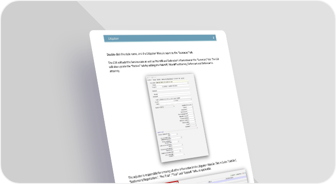 Litigation 5 Double-click the style name, and the Litigation Module opens to the “Summary” tab. The CSR will add the Service date as well as Plaintiff and Defendant information on the “Summary” tab. The CSR will also update the “Parties” tab by adding the Plaintiff, Plaintiff’s attorney, Defendant and Defendant’s attorney. The adjuster is responsible for entering all other information in the Litigation Module. This includes “Liability”, “Settlement/Negotiations”, “Pre-Trial”, “Trial” and “Appeals” tabs, as applicable. Confidential, Proprietary and Trade Secret Document of NARS and protected by the Florida Uniform Trade Secrets Act, chapter 688, Florida Statutes. No use allowed unless specifically authorized.