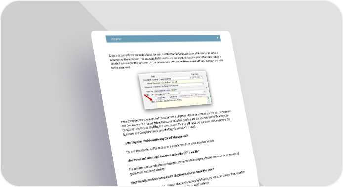 Litigation 8 Ensure documents are properly labeled for easy identification including the name of the sender as well as a summary of the document. For example, Defense attorney, Joe Smith re: upcoming mediation date. Include a detailed summary of the document in the note section. A file note will be created with your summary and a link to the document. If the document is a Summons and Complaint and a Litigation Module needs to be opened, add the Summons and Complaint to the “Legal” folder to create a 142 diary. Confirm the document is labeled “Summons and Complaint” and include the filing and service dates. The CSR will move the Summons and Complaint to the Summons and Complaint folder once the Litigation screen is created. Is the Litigation Module audited by QA and Management? Yes, and the adjuster will be audited on the content and use of the Litigation Module. Who moves and labels legal documents within the C3™ claim file? The adjuster is responsible for placing legal documents into appropriate folders. See above for an example of appropriate document labeling. Does the adjuster have to request the Litigation module be opened for them? No, adjusters may create the Litigation Module themselves by following the instructions above. If you complete the Litigation Module, conclude any 142 code diaries to avoid confusion. Confidential, Proprietary and Trade Secret Document of NARS and protected by the Florida Uniform Trade Secrets Act, chapter 688, Florida Statutes. No use allowed unless specifically authorized.